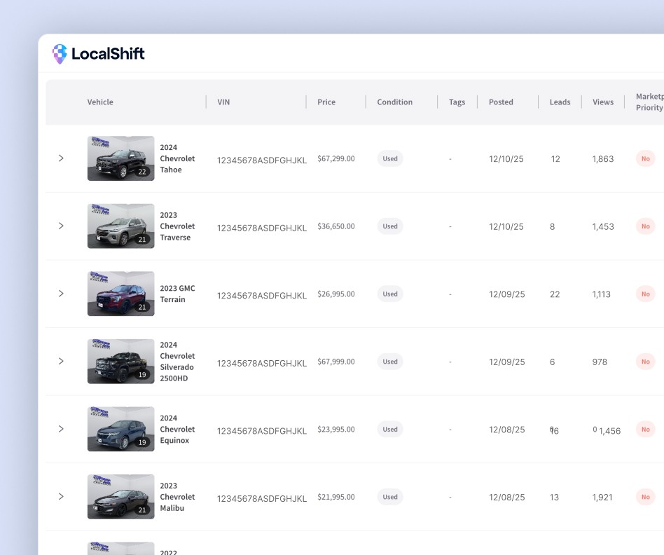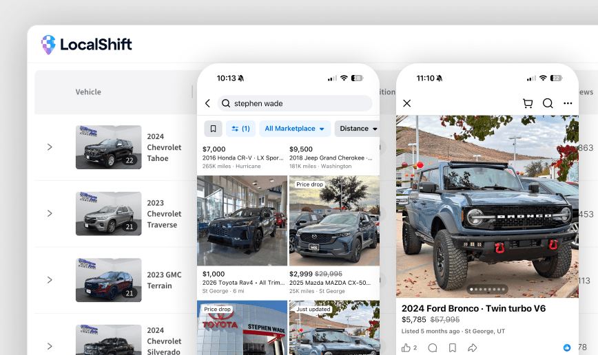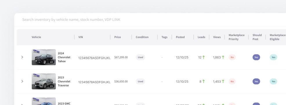 We manage your Facebook Marketplace listings from start to finish so you can get back to selling cars. Save time, save money, sell more cars.